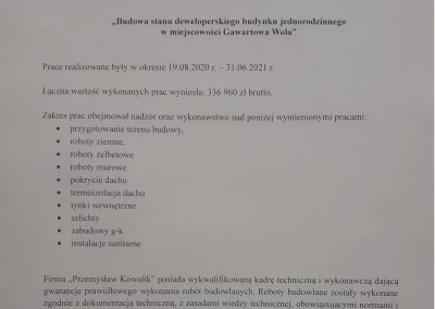 Oferujemy wykonanie budynków począwszy od wykonania fundamentów do stanu deweloperskiego. Największy nacisk kładziemy na jakość naszych prac oraz na ich wykonanie w ustalonym terminie.